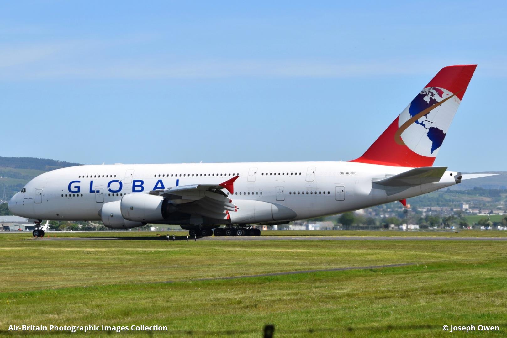 9H-GLOBL Airbus A380-841 Global Airlines Glasgow - International (GLA / EGPF), UK - Scotland Joseph Owen - 15/05/2025