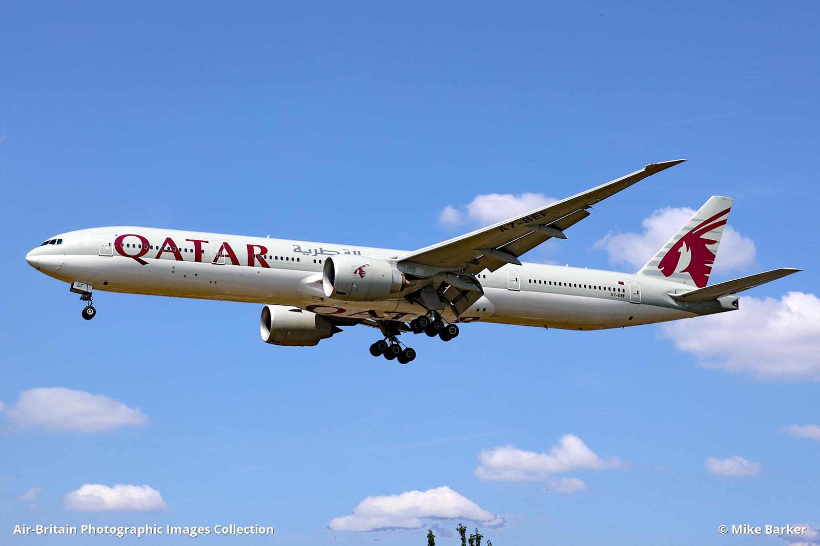 A7-BEF Boeing 777-3DZER Qatar Airways (QR / QTR) London - Heathrow (LHR / EGLL), UK - England Mike Barker - 13/06/2025