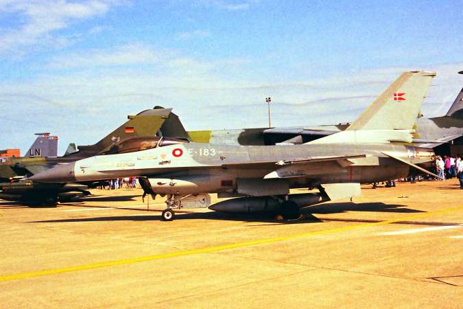 E-183 General Dynamics F-16A Fighting Falcon Royal Danish Air Force RAF Mildenhall (MHZ / EGUN), UK - England Graham Hutchinson - 28/05/1994