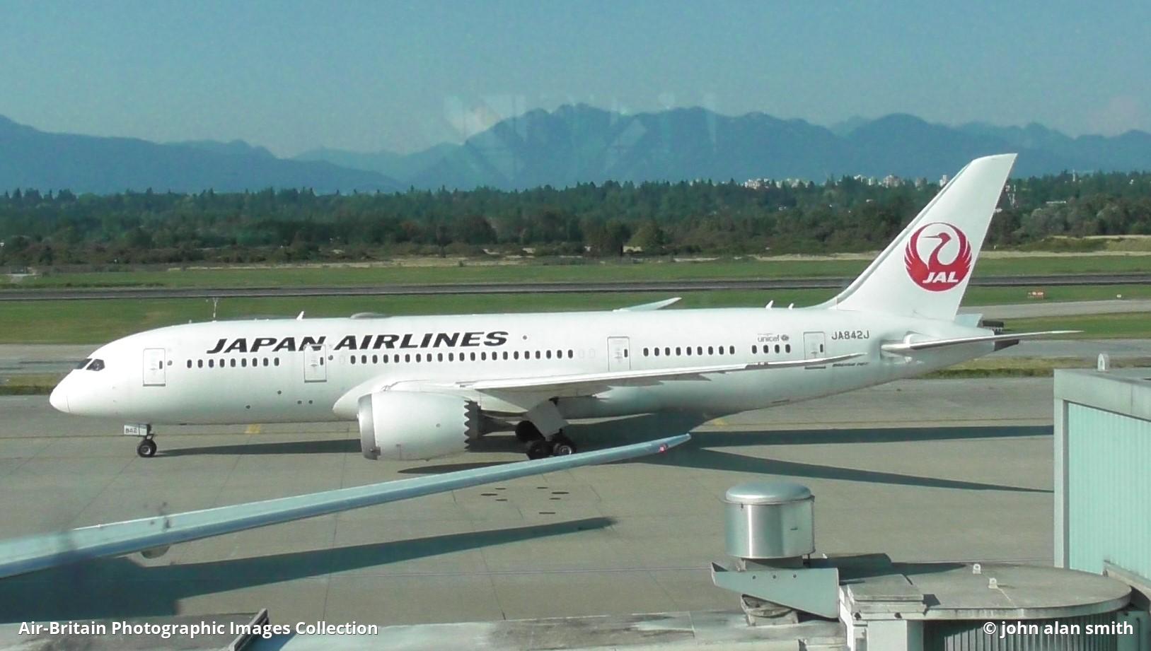 JA842J Boeing 787-8 Dreamliner Japan Airlines (JL / JAL) Vancouver International Airport (YVR / CYVR), Canada - British Columbia John Alan Smith - 08/2025