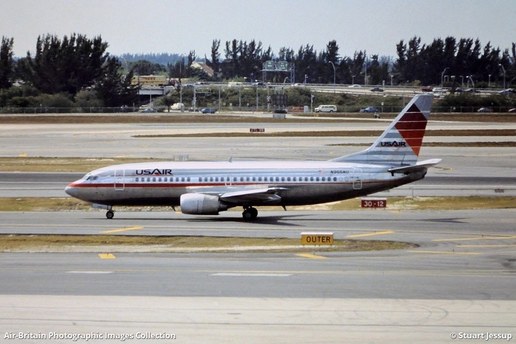 N355AU Boeing 737-3B7 USAir (US / USA, AWE) Miami - International (MIA / KMIA), USA - Florida Stuart Jessup - 22/03/1988
