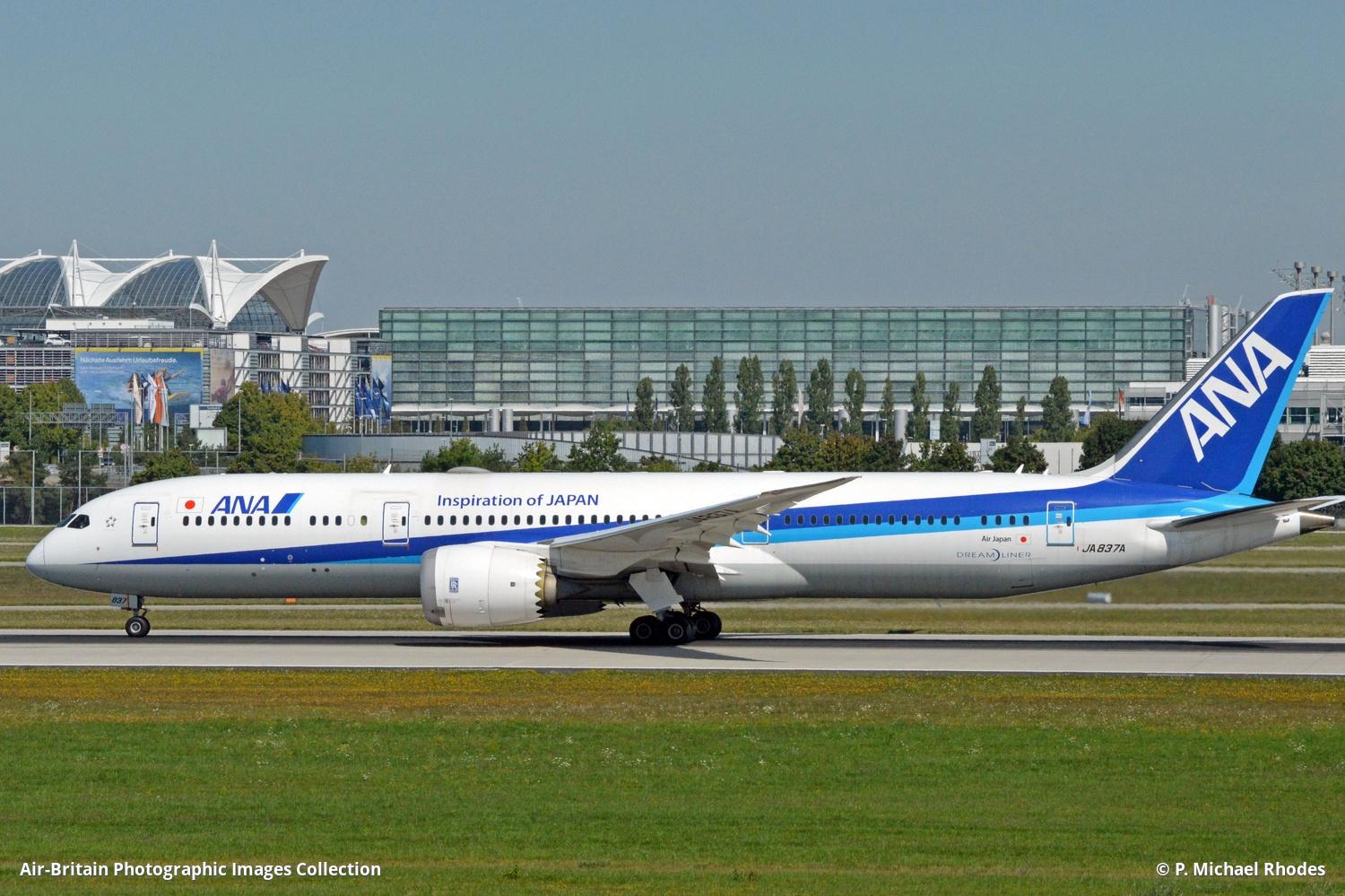 JA837A Boeing 787-9 Dreamliner ANA - All Nippon Airways (NH / ANA) Munich - Franz Josef Strauss (MUC / EDDM), Germany P. Michael Rhodes - 26/08/2025