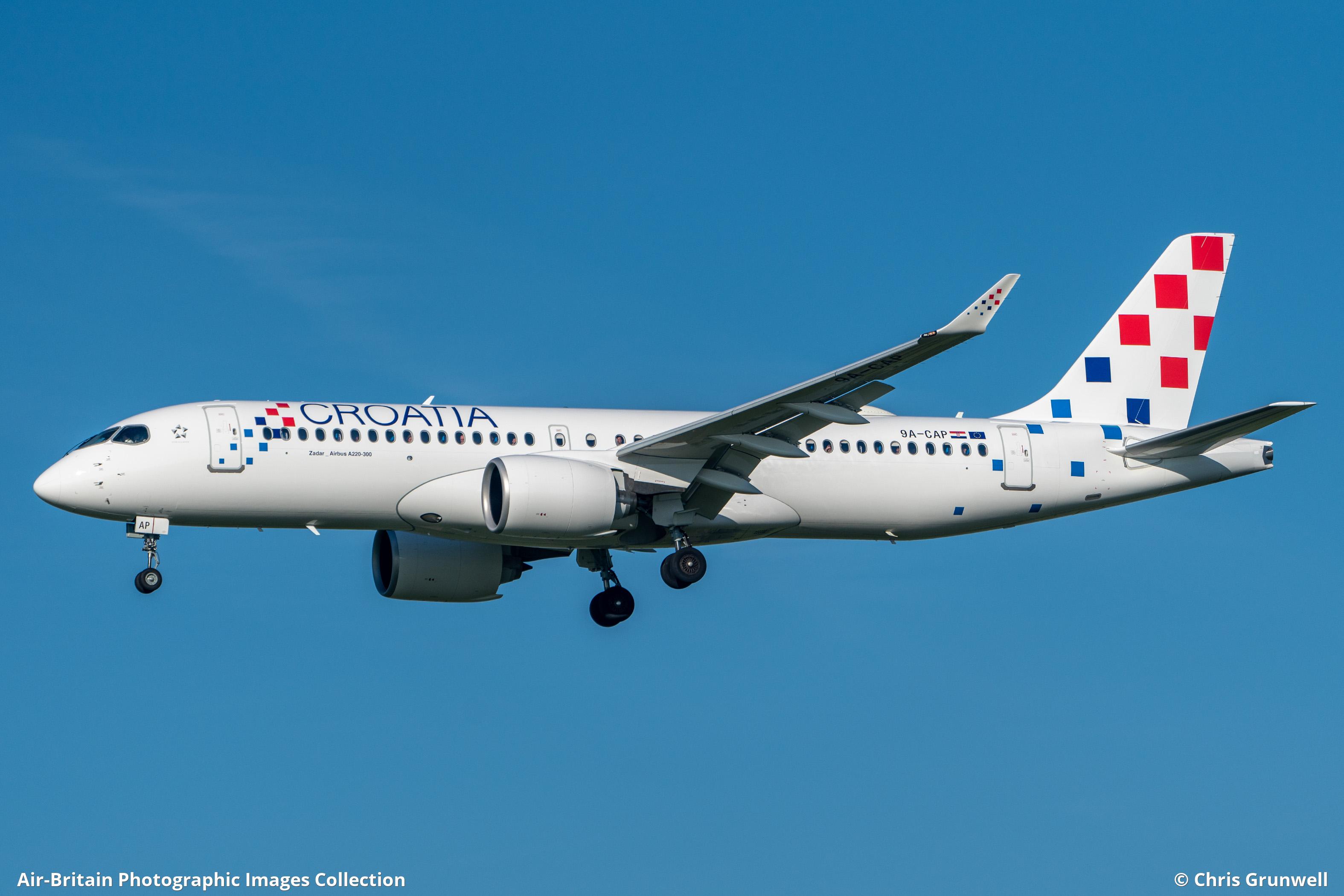 9A-CAI Airbus A220-300 Croatia Airlines (OU / CTN) London - Heathrow (LHR / EGLL), UK - England K West - 03/03/2025