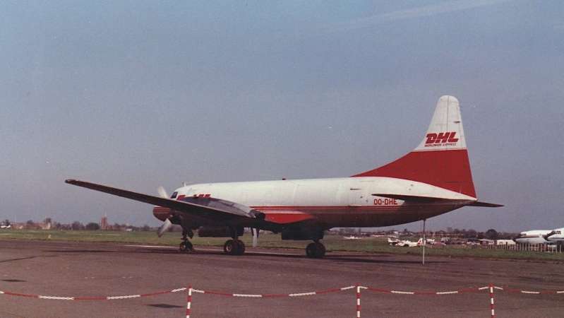 OO-DHE Convair 580F DHL Air - European Air Transport (QY / BCS) Southend (Rochford) (SEN / EGMC), UK - England Keith Endersbee - 27/03/1989